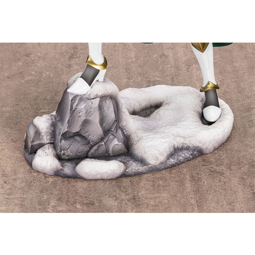 El contraste entre su orgullo y la hermosa armadura blanca pura, junto con la suavidad de la ropa que se asoma entre las aberturas, ha sido recreada fielmente.