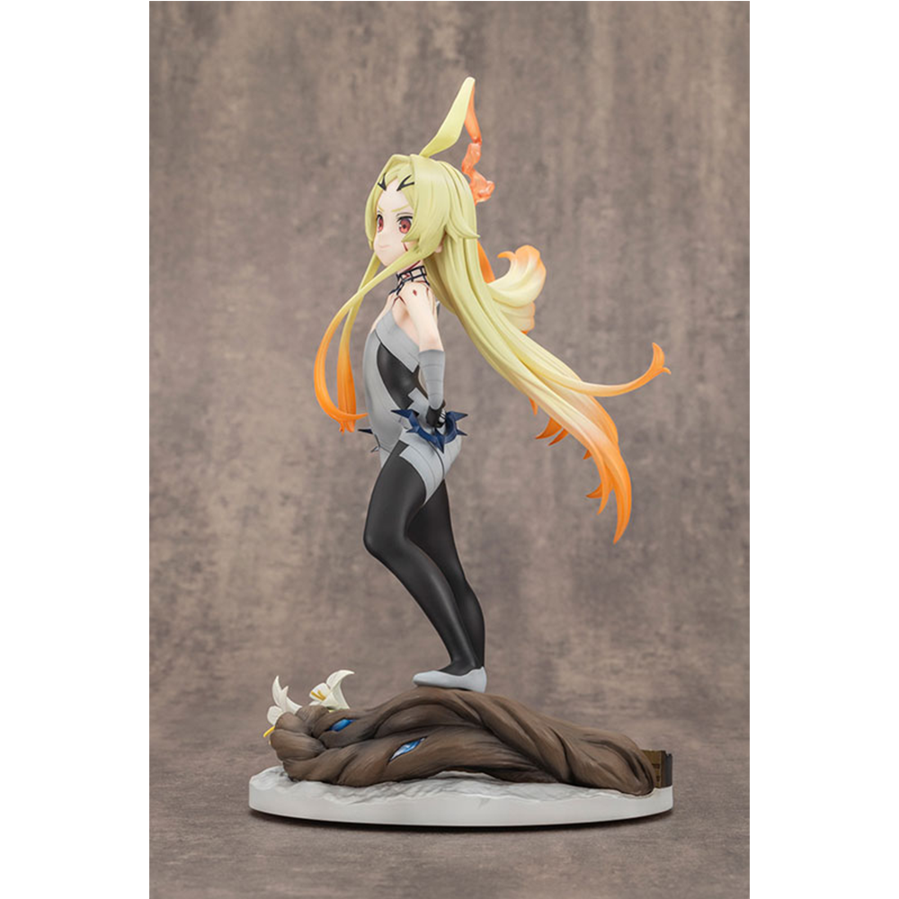 La base también ha sido cuidadosamente esculpida para reflejar el mundo de la serie, incluyendo elementos de la historia como la tapa del ataúd donde Teoritta dormía, así como la madera petrificada y las flores de lirio colocadas en su interior.
